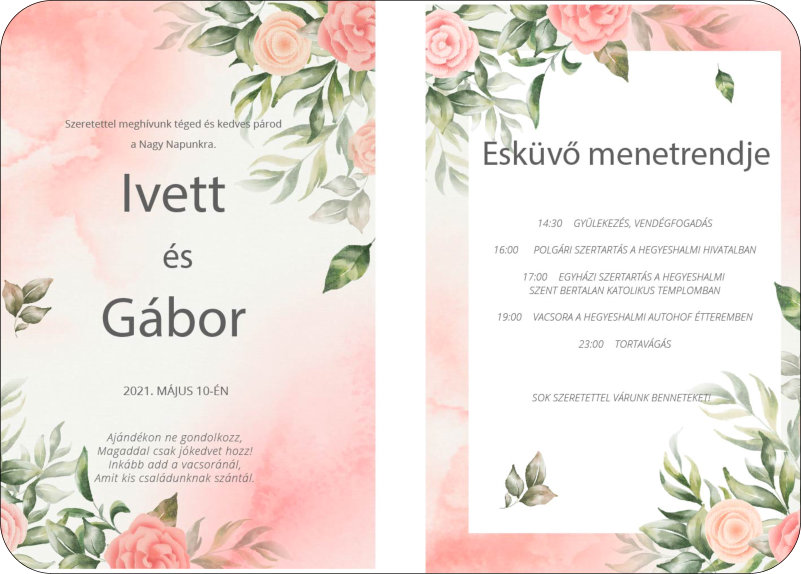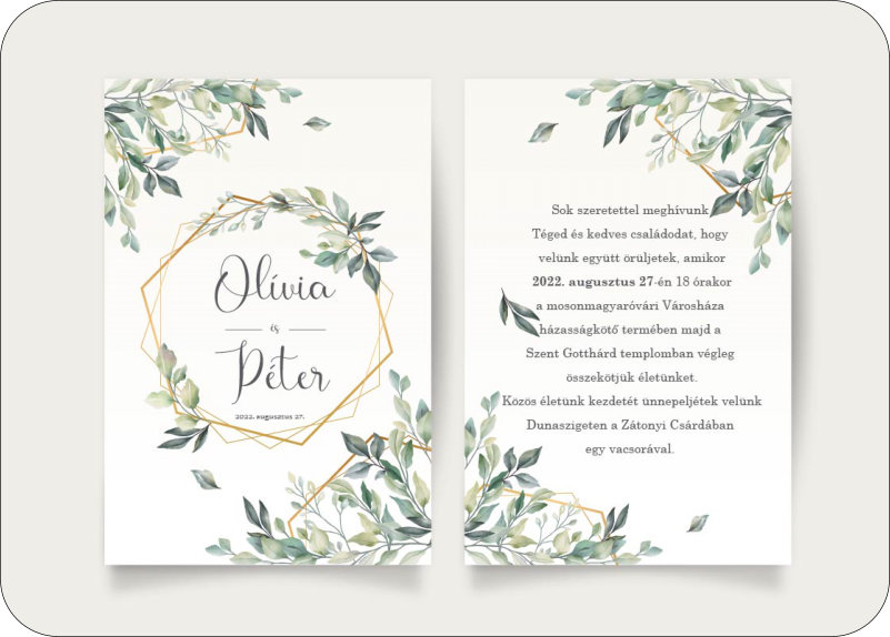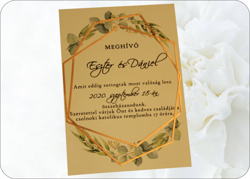 Az alábbi meghívókat egyéni elképzeléseid alapján elkészítjük neked ,legyen az akár szín vagy betűtípus változtatás,melyre plusz költséget nem számítunk fel! Amennyiben a minták között nem találtál számodra megfelelőt, keress bizalommal és készítek egy egyedi ajánlatot!Az árak tartalmazzák a szerkesztés és a nyomtatás díját is!