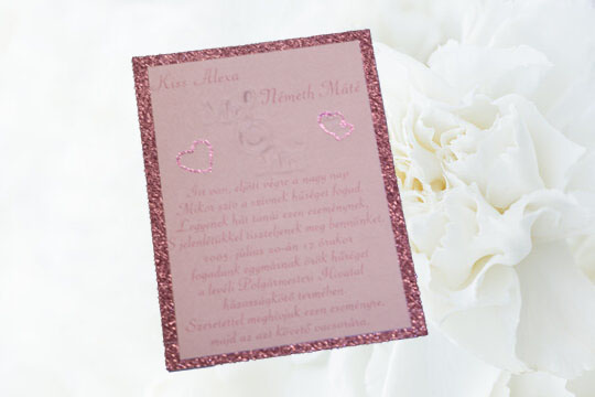 Az alábbi meghívókat egyéni elképzeléseid alapján elkészítjük neked, legyen az akár szín vagy betűtípus változtatás, melyre plusz költséget nem számítunk fel! Amennyiben a minták között nem találtál számodra megfelelőt, keress bizalommal és készítünk egy egyedi tervezetet!